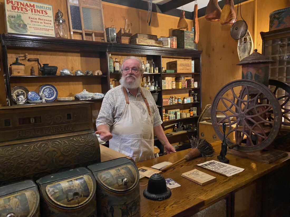 Inside the museum, volunteer Mark Addington, dressed in historic clothing, welcomed guests into the General Store in the Avenue of Shops.