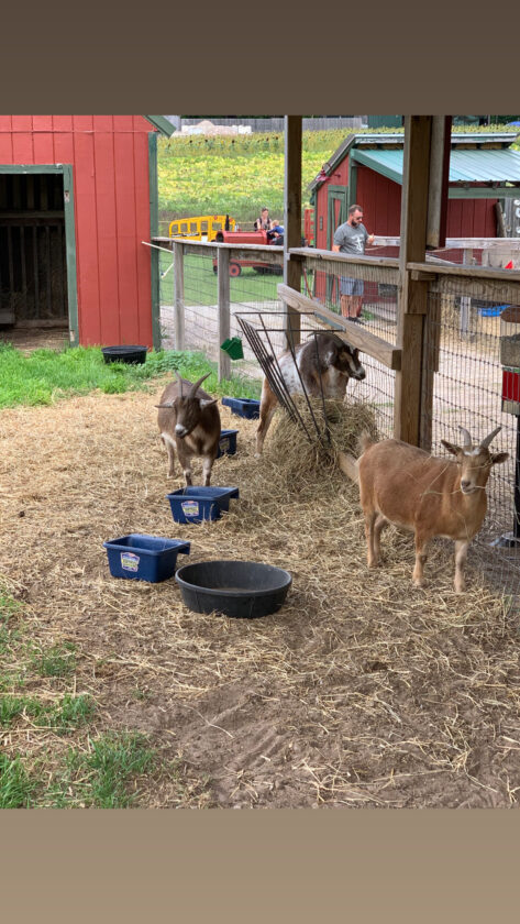News Photo by Kayla Wikaraysz Goats are seen eating hay in an enclosure at Knaebe’s. The petting zoo is just one of many activities visitors can enjoy at the farm.