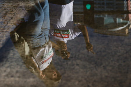 Members of the religious sect Iglesia Ni Cristo (Church of Christ) are reflected on a puddle of water as they participate in a three-day anti-corruption rally at Manila's Rizal Park, Philippines, Sunday, Nov. 16, 2025. (AP Photo/Mark Cristino)