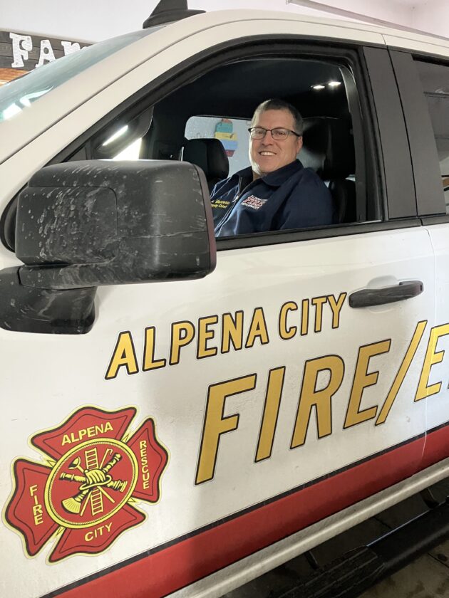 Courtesy photo Fire Chief Andy Marceau is seen sitting in an Alpena Fire Department (AFD) vehicle. He was named the department’s new fire chief on Wednesday.