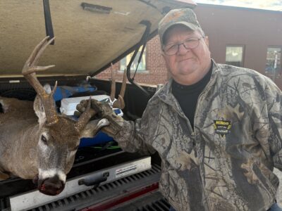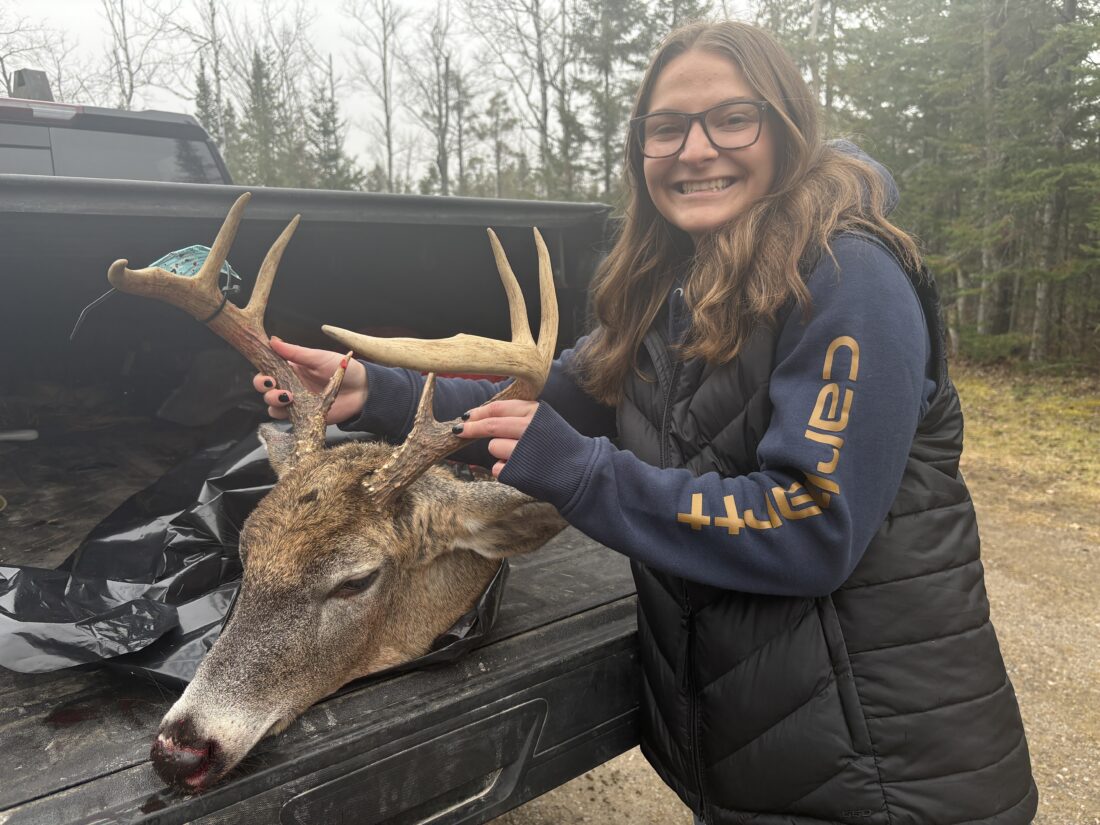 News Photo by Steve Schulwitz Riley Krajniak poses with the large buck she bagged on the opening day of deer season. Krajniak shot the deer in Presque Isle County.