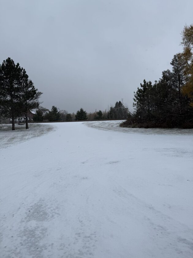 Photo by Gretchen Ross This strip of Cathro Road in Alpena was snowcovered and slick on Sunday after Northeast Michigan received its first snow of the season. The Michigan State Police are urging people to take the necessary steps to help prepare them for winter weather.