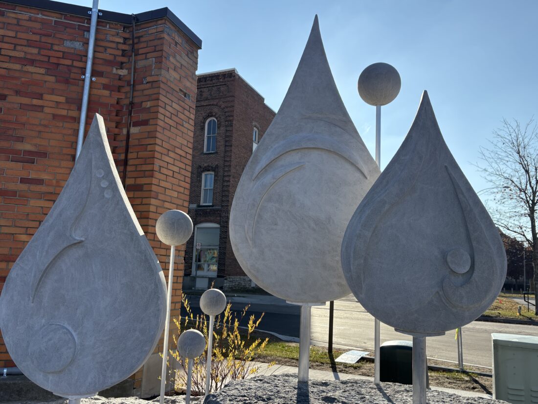 News Photo by Steve Schulwitz A new sculpture sits on display near Culligan Plaza on Thursday. The new plaza is close to completion and some people were already making time to stop and check it out.