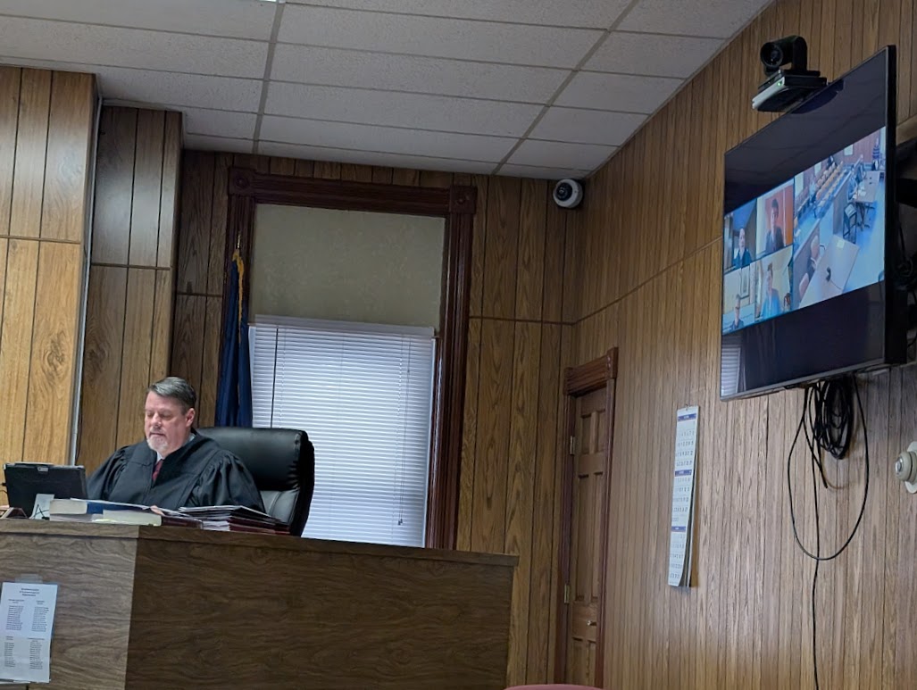 News Photo by Reagan Voetberg Judge Aaron Gauthier of the 53rd Circuit Court in Presque Isle presided during Alex Harimoto’s hearing on Monday. Harimoto appeared via Zoom, along with his attorney, Jesse Williams, and the prosecuting attorney, Elizabeth Reed of Alcona County.