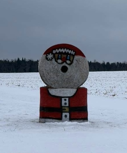 Photo by Barb Sumerix Two round hay bales of are used to build a large Santa in this farm field on Werth Road in Alpena. The photo was submitted to The News by Barb Sumerix last week.