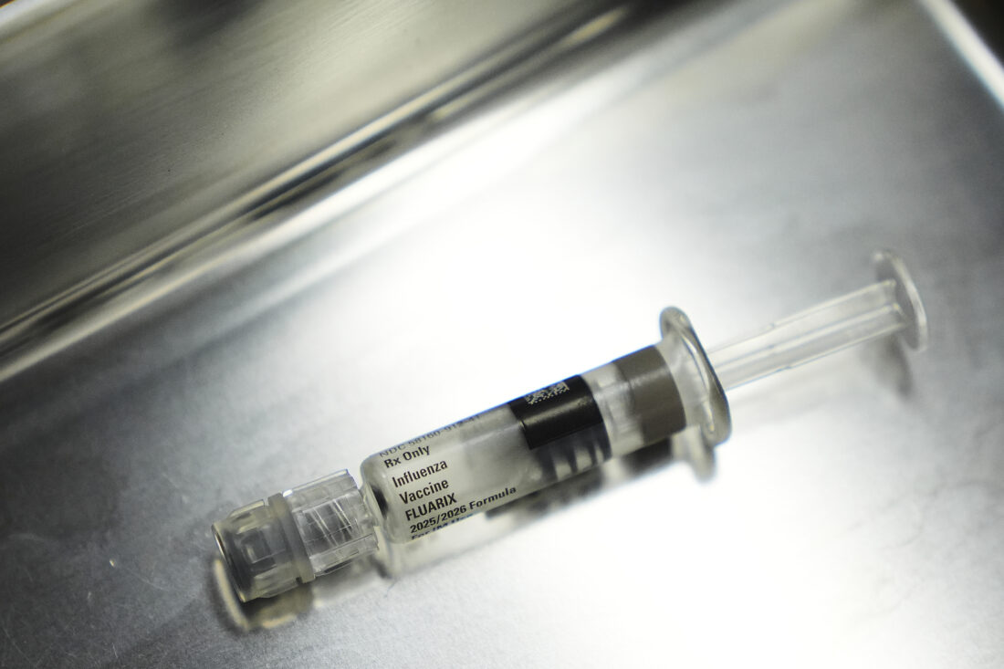 A syringe of the Fluarix flu vaccine is seen at International Community Health Services, Wednesday, Sept. 10, 2025, in Seattle. (AP Photo/Lindsey Wasson)