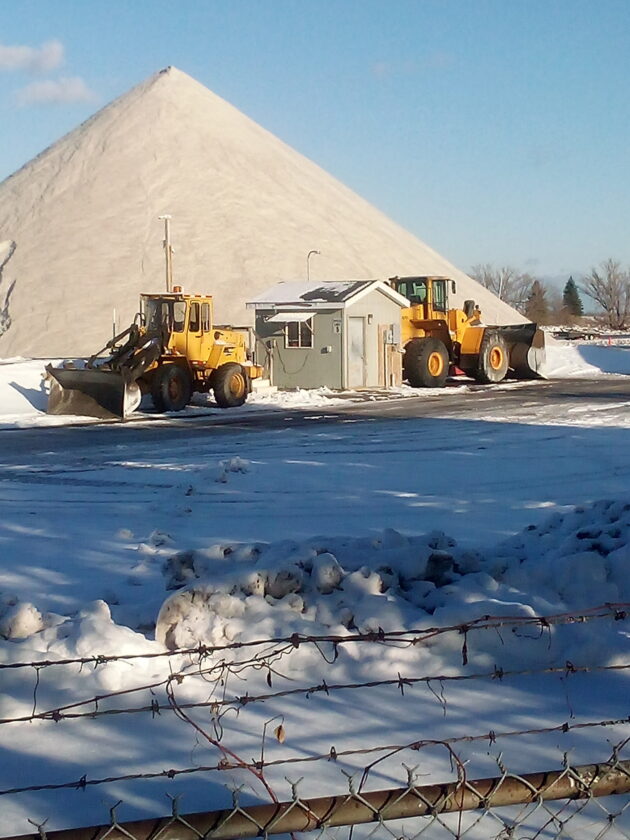 News Photo by Josh Jambo The large salt pile in Alpena already has a sizable chunk out of it, after heavy snow and some ice moved into the area over the weekend. The National Weather Service said there is a chance that the area will have a white Christmas.