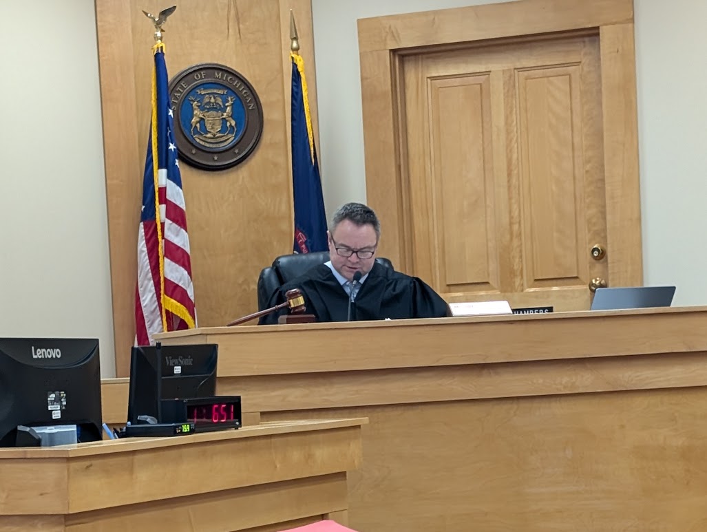 News Photo by Reagan Voetberg 89th District Court Judge Michael Ekdahl presides over Theodore Beck’s arraignment on Tuesday in Rogers City.
