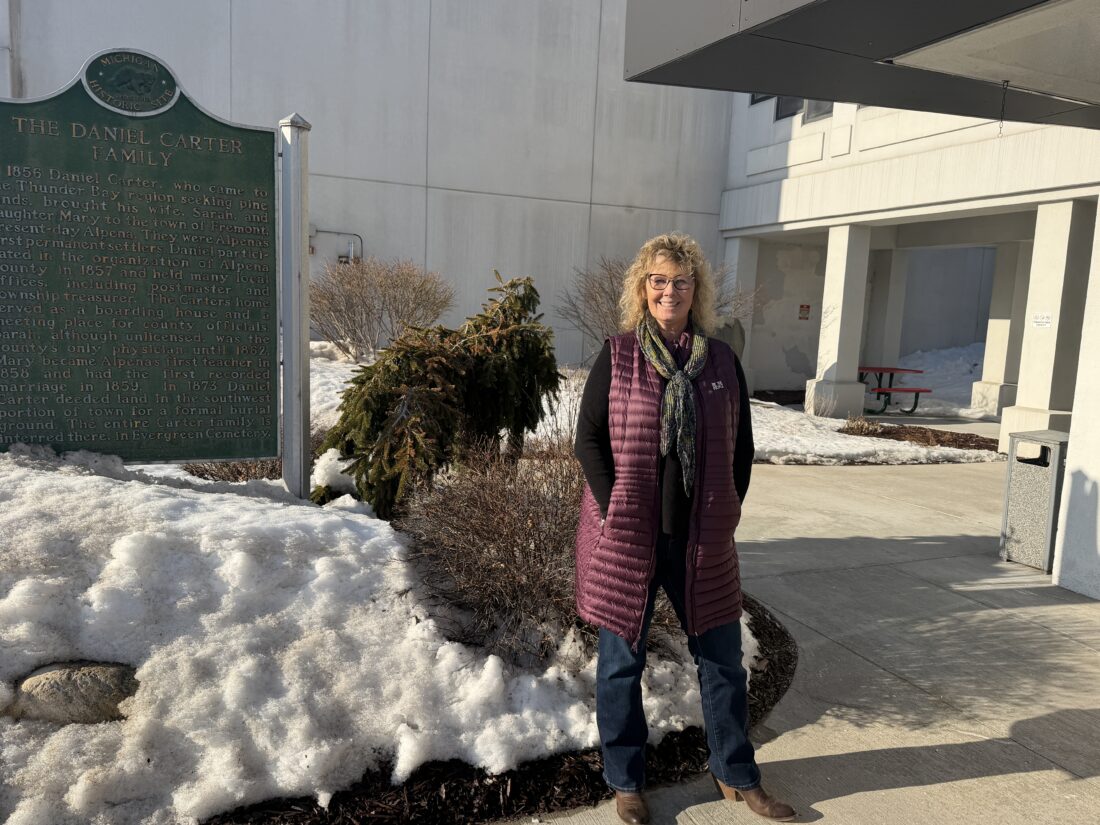 News photo by Kayla Wikaryasz On Tuesday, gubernatorial candidate Karla Wagner, R-Kent County, is seen standing in front of the Alpena County Library.
