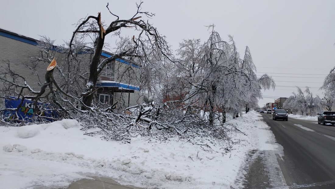 News photo by Josh Jambor Fallen trees and limbs from the recent ice storm line 2nd Avenue in Alpena on Wednesday.