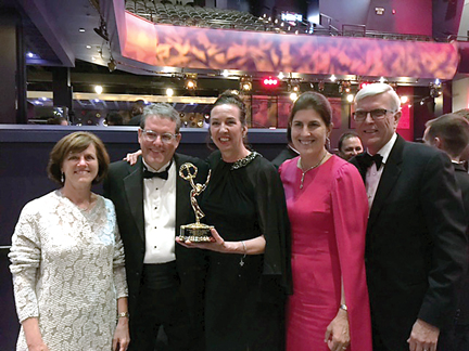 Courtesy photo Left to right, Charlevoix Historical Society President Denise Fate, brother and sister Brian and Anne Belanger, Tamara Burns and Gene Hopkins at the National Academy of Television Arts and Sciences-Michigan Chapter 2017 Emmy Awards in Detroit. Anne Belanger, producer and owner of Bon Ami Filmworks, received an Emmy award for The Wizard of Boulder Park, Best Historical Documentary.