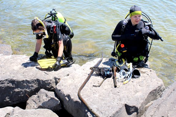 The event was hosted by Great Lakes Divers, who were also joined by volunteers who walked along the Maritime Heritage Trail to pick up trash on the shoreline.