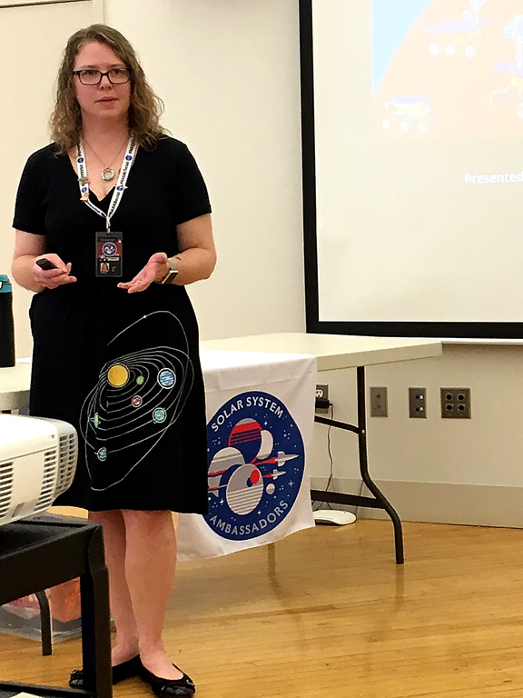 Saturday afternoon, Jennifer Ayala from Ann Arbor and volunteer for NASA/ Solar Ambassador, spoke about why Mars is so fascinating. Every two years NASA sends up a rover. The last two rovers, Opportunity and Spirit, have lasted much longer than previously thought. Spirit had a lifespan of 30 days and it has lasted six years, while Opportunity has lasted 14 years and is currently climbing down a large crater.