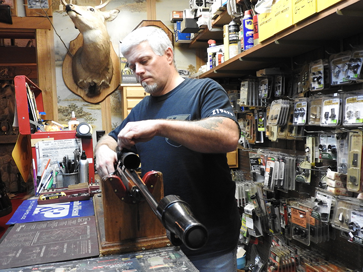 - News Photo by Crystal Nelson Jeff Stahl, an employee with Bob’s Gun Shop in Alpena, works on a gun on Tuesday that was brought into the shop for repairs. Counties in Northeast Michigan and across the state are debating resolutions that would declare the counties as Second Amendment sanctuaries.