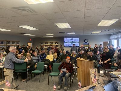 News Photo by Steve Schulwitz A full house attends the Alpena County Board of Commissioners meeting on Tuesday as dozens of Second Amendment supporters show up to encourage the board to pass a resolution that would proclaim the the county a Second Amendment sanctuary county. Commissioners tabled a vote on the issue until its February meeting.
