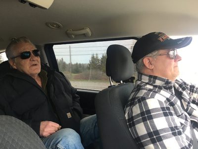 News Photo by Meakalia Previch-Liu American Taxi Cab owner Kevin Schmidt is seen driving one of his regular passengers, Wesley Jones, home from a doctor’s appointment on April 21. Schmidt said he usually takes his customers to places like the grocery store or doctor appointments.