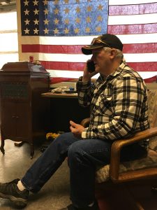 News Photo by Meakalia Previch-Liu Kevin Schmidt, owner of American Taxi Cab, takes a call from a customer while sitting in his office on West Chisholm Street on April 21. Schmidt operates six days a week, Monday through Saturday, and is both the owner and only driver at his business.