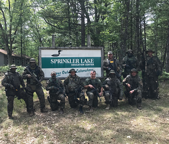 Courtesy Photo Officers from police and sheriff departments around northern Michigan gather on Aug. 19 at a math and science education center in Alcona County to hone their critical incident skills. The Sprinkler Lake Education Center played host to a monthly training for the Northern Michigan Mutual Aid Task Force’s Emergency Response Team, a group ready to respond to barricaded subjects, hostage situations, and other high-risk situations. The group has been called out six times this year, according to Alcona County Sheriff Scott Stephenson. The U.S. Forest Service gave permission for the training, which used the woods of Alcona County to simulate the environment of much of northern Michigan.