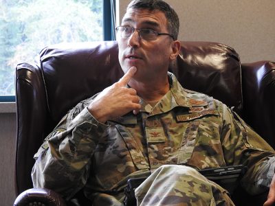 News Photo by Julie Riddle New Alpena Combat Readiness Training Center Commander Col. Jim Rossi talks about his plans to connect with the community as he assumes his post.