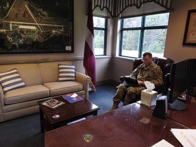News Photo by Julie Riddle Col. Jim Rossi looks through online notes in his new office as commander of the Alpena Combat Readiness Training Center on Friday.