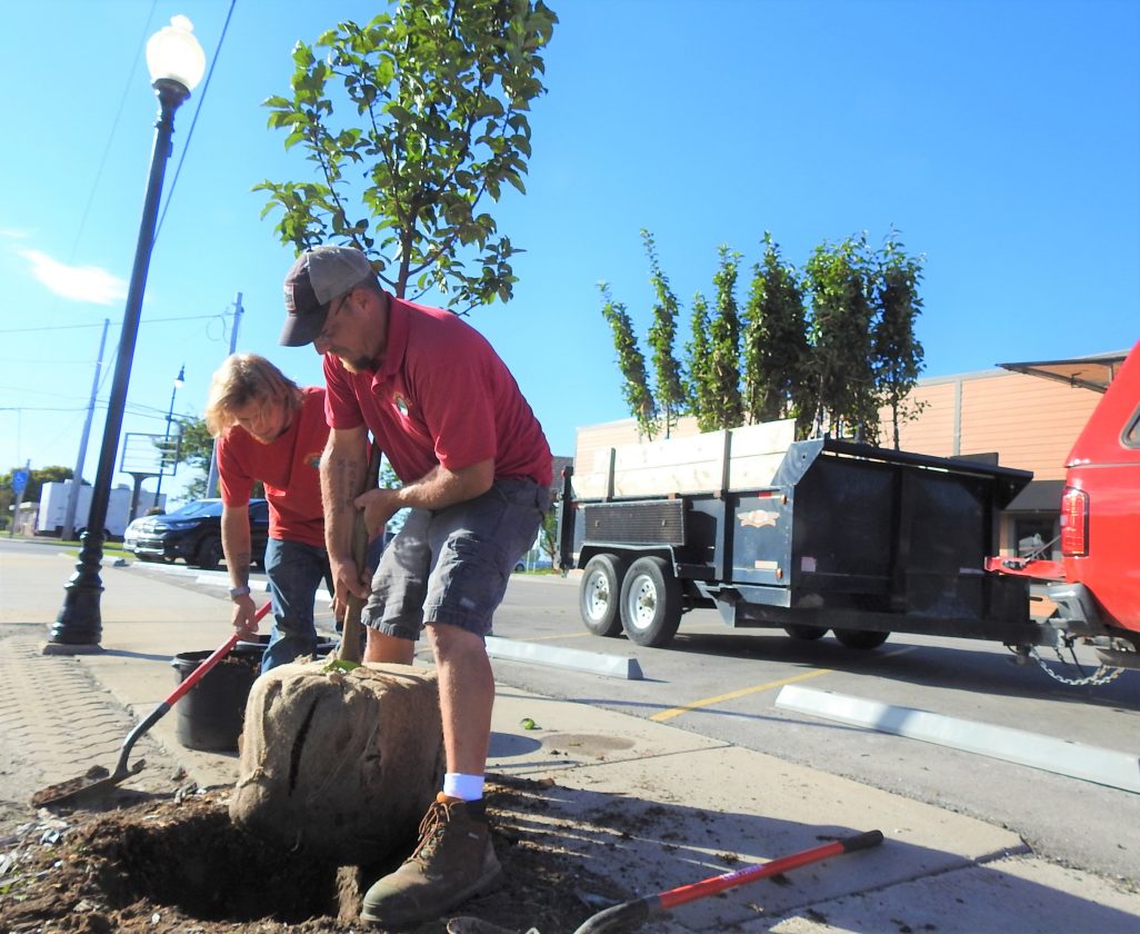 Ken Bruski, foreman at PRATTScape Landscape and Design service, plants one of 21 crab apple trees the company is planting around downtown Alpena area today. The city-funded trees — planted annually to replace those that haven’t thrived in their Up North homes — beautify business and residential areas without encroaching on road space or blocking drivers’ visibility, Bruski said. The city commissioned 60-some trees to be planted last year. This week’s batch of trees is the first of 2020. Bruski is unsure if the city will request more plantings this year.