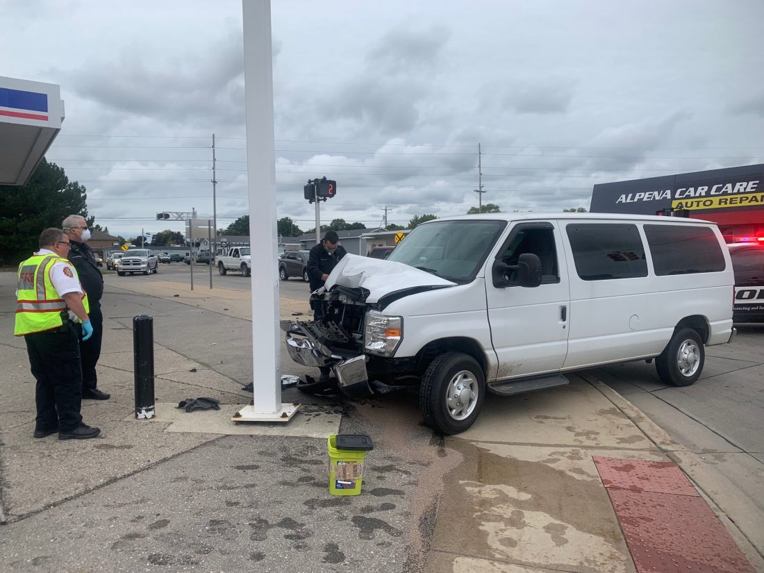Alpena firefighters work on a van after a two-vehicle crash shortly after noon today in Alpena.