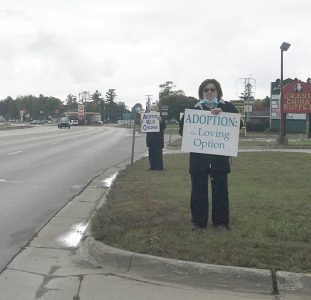 - News Photo by Julie Riddle A family participates in a silent walk for justice down Chisholm Street in Alpena on Sunday.
