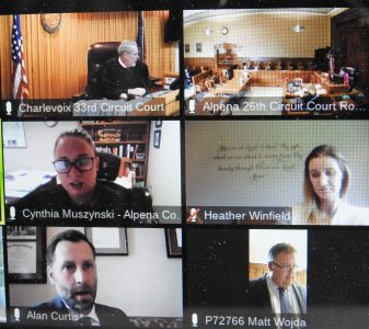 - News Photo by Julie Riddle Attorneys prepare for the trial of Alpena’s Heather Winfield, which was scheduled for the end of the month but could be postponed after new evidence arrived.