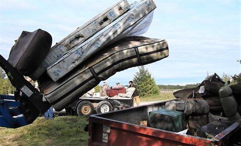 - News Photo by Julie Riddle A stack of mattresses is readied to be added to an already full dumpster during a cleanup day on Hamilton Road north of Alpena on Saturday.