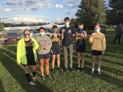 Alcona High School runners pictured from left to right are: Janae Kierzek, Karen Sharboneau, Cole Upper, Carter Upper, Darren Boyat, Sara Decker. All of them earned all-North Star League honors on Tuesday during the league finals in Fairview.