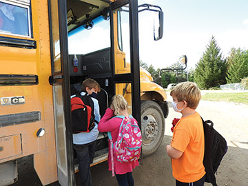 - News Photo by Crystal Nelson Pictured from left to right, siblings third-grader Isaac Guy, first-grader Destiny Guy, and fifth-grader Keygan Guy board the bus after school on Thursday at Wilson Elementary School.