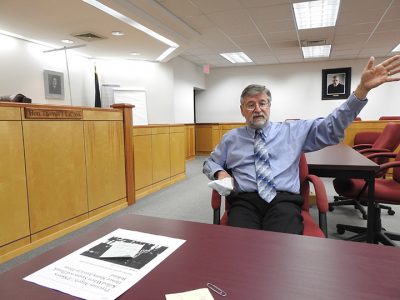 - News Photo by Julie Riddle Judge Thomas LaCross, of Alpena’s District Court, talks about the news story he has every convicted drunk driver read — a story of three children killed by a drunk driver.