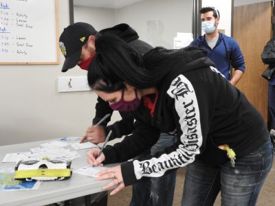 New Photo by Crystal Nelson Alpena residents Jaime Whaley and Jeff Whaley check in to vote Tuesday at Word of Life Baptist Church in Alpena.