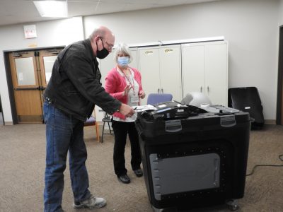 News Photo by Crystal Nelson Alpena resident Jim Siegel casts his ballot on Tuesday at Word of Life Baptist Church in Alpena.