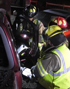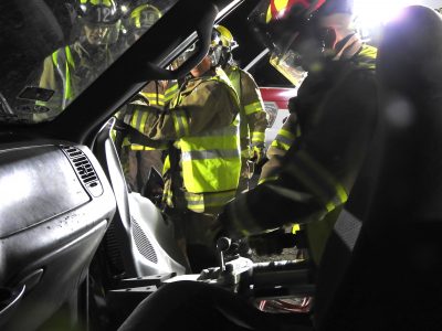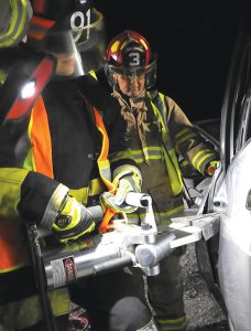 - News Photo by Julie Riddle Firefighters use hydraulic extraction tools to pull doors off a vehicle at a training at the Alpena Township Fire Department north side station on Wednesday.