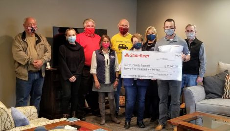Friends Together was awarded a $25,000 grant from State Farm Neighborhood Assist. Pictured above from left to right is Gary Stevens, Abby Bowers, John Knapp, Lesslee Dort, Jim Kollien, Judy Burns, Shelly Gibbs, TJ Hoes, and Bill Mor.
