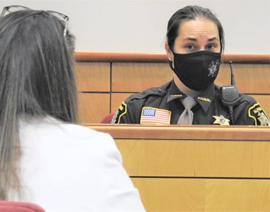 Deputy Christina Bednarski of the Alpena County Sheriff’s Office testifies regarding William James Allen in Alpena’s 88th District Court on Tuesday.