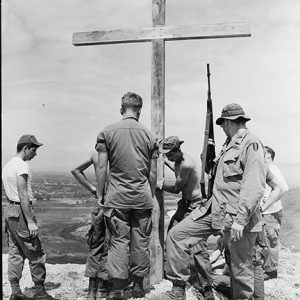 - Courtesy Photo U.S. soldiers erect a cross in 1968, believed by some veterans to be the world’s first Vietnam memorial, in this photo taken by Alpena resident Chuck Bennett in the Cha Rang Valley in South Vietnam.