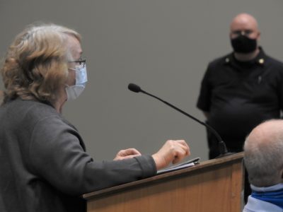Former Alpena Township Supervisor Marie Twite speaks to representatives of the township and the city at a meeting Tuesday night that invited comments from the public on a proposed merger between the two communities’ fire departments. Twite expressed concern about the city’s ability to follow through on its intention to take over emergency care of the township.
