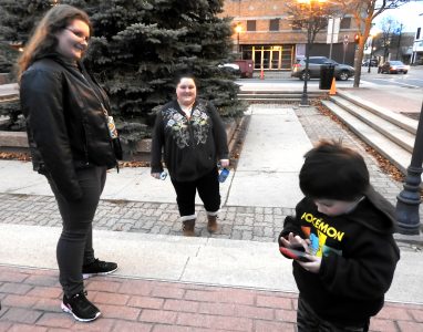 - News Photo by Julie Riddle Aidan Kinsman, 3, plays Pokemon Go! on a smartphone, watched by sister PatienceMarie Kinsman and Amethyst Mann. Police should have access to digital data, as long as they have reasonable cause to extract it, the women said.