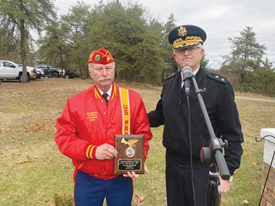 Frank Rosinski, left, was named the 2020 Alpena County Veteran of the Year during the Veteran’s Day ceremony Wednesday. He was presented the award by retired U.S. Army Major General Bert Francisco.