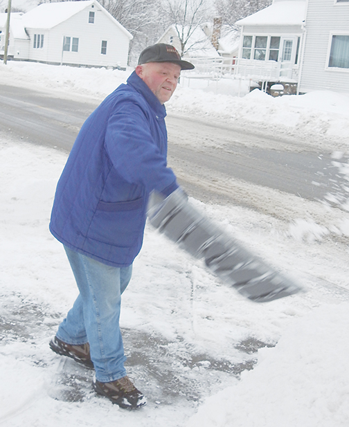 News Photo by Julie Riddle Snow flies from the shovel of David Allen, who was cleaning his Alpena driveway of the first hefty snowfall of winter on Sunday afternoon.