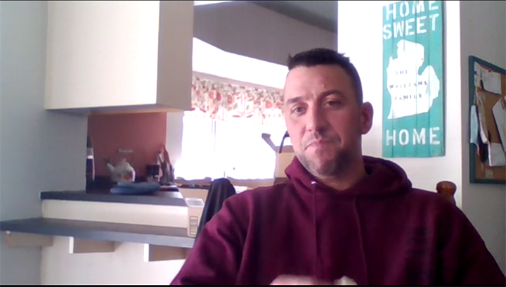 News Photo by Julie Riddle Peer Recovery Coach Zach WIlliams speaks via videoconference, one of the ways he connects with people in addiction recovery.