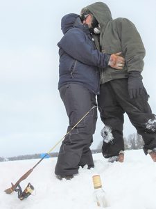 The couple’s handful of tip-ups weren’t tipping up, but it wasn’t an all-bad way to spend the holiday, they agreed.