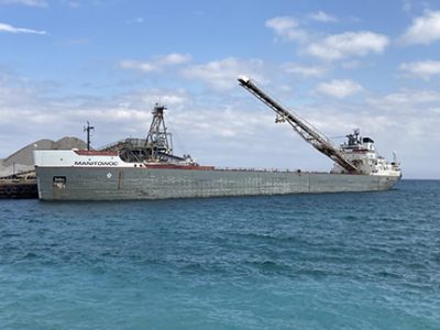 - Courtesy Photo The Manitowoc, a 650-foot self-unloading bulk carrier built in 1973, was the first ship of the season to make its way to the Lafarge Presque Isle port. Operated by Captain Dave Richmond and Chief Engineer Charles Ritter, the freighter arrived at the dock on Wednesday and left with 19,090 tons of limestone early Thursday morning. “This first load of limestone is going to Marine City, Michigan and will serve in various ongoing road construction projects in and around the Detroit metro area,” Plant Superintendent Tim Cordes said. Cordes said this trip is also the Manitowoc’s first trip of the season.