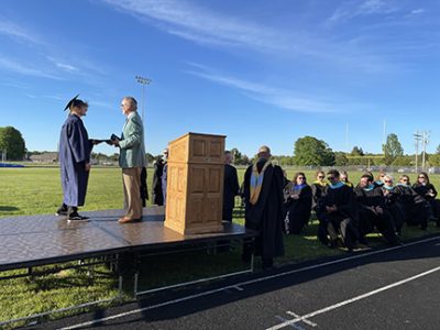 Because the weather was colder, administrators tried to keep the ceremony brief. Superintendent Dan O’Connor and High School/Middle School Principal Christie Thomas welcomed the graduates, their parents, and family members to commencement.