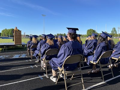 LINCOLN — Sick of the coronavirus pandemic, Alcona High School’s Class of 2021 looked to the future at its graduation Friday in the high school’s football stadium.