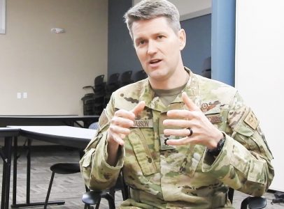 News Photo by Julie Riddle Lt. Col. Brian Thomasson, exercise director for Mobile Guardian 2021, on Wednesday discusses the exercises currently underway at the Alpena Combat Readiness Training Center.