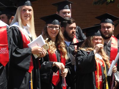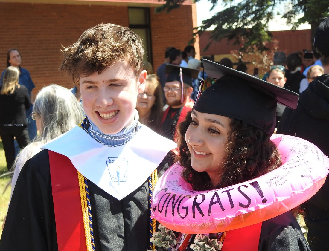 - News Photo by Julie Riddle Graduates smile for photos on the school lawn after a graduation ceremony at Onaway High School in Onaway on Sunday.