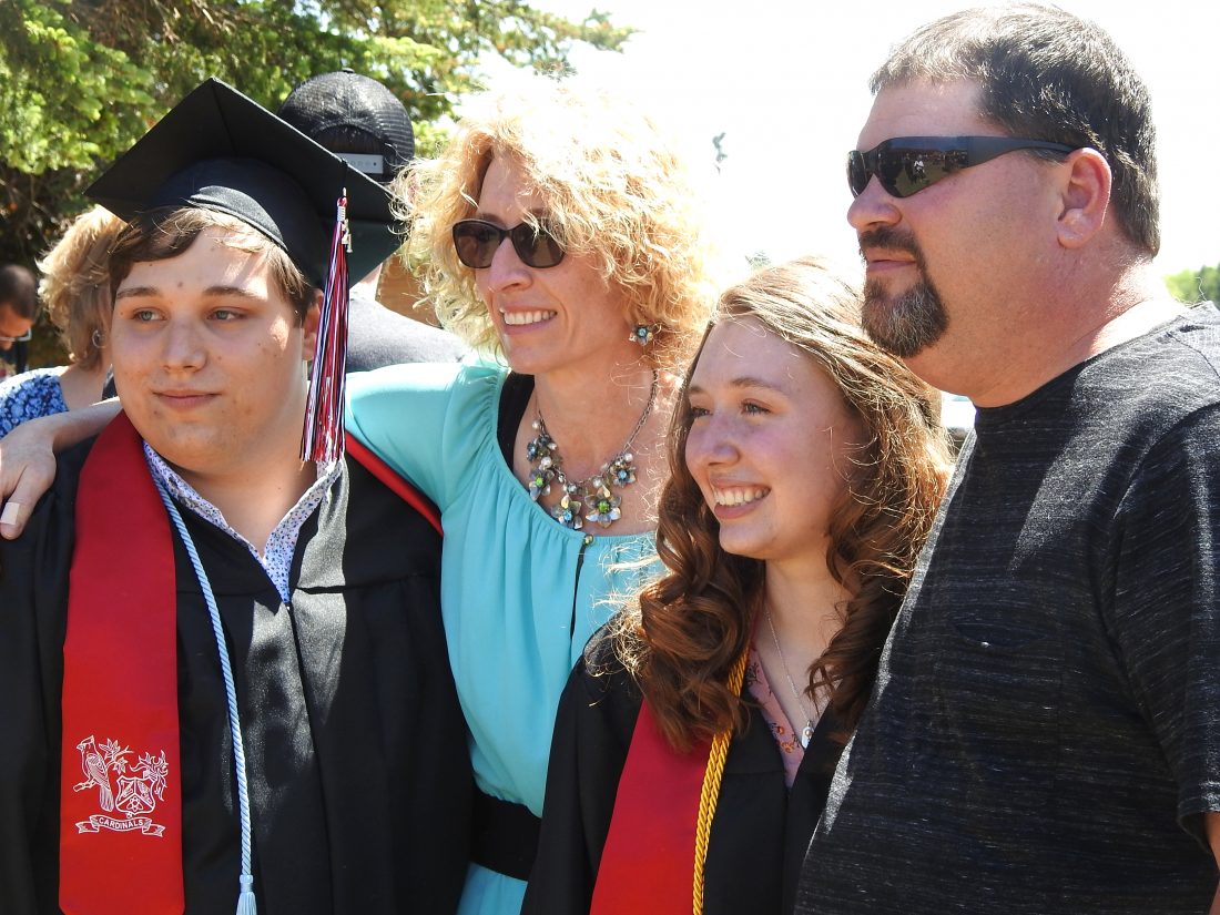 News Photo by Julie Riddle Graduates smile for photos on the school lawn after a graduation ceremony at Onaway High School in Onaway on Sunday.